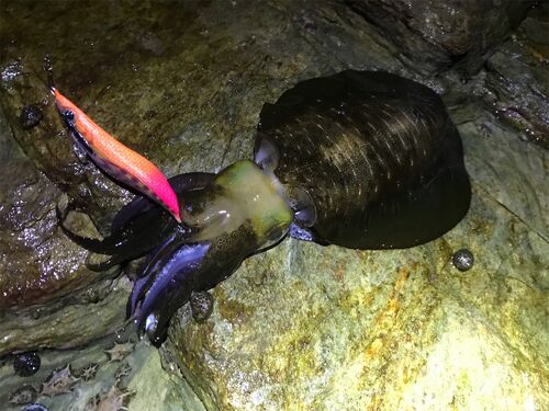昨日は午後からダイエットエギングへ行き、磯場散策する予定だったのですが、途中途中に寄り道する悪い癖が出てしまい、、、 寄り道途中で本命ポイントに行くのを諦めるという そんな感じでしたが、2箇所目に寄り道したポイントでここでは初となるイカを捕獲…